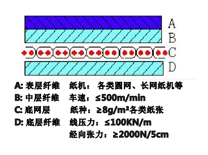 單層 BOM 毛毯的底網(wǎng)層是單層結(jié)構(gòu),具有濾水性好、縮率小、便于洗滌、毯痕輕、使用壽命長(zhǎng)等特點(diǎn),廣泛應(yīng)用于圓網(wǎng)、長(zhǎng)網(wǎng)紙機(jī)等生產(chǎn)各類(lèi)紙張