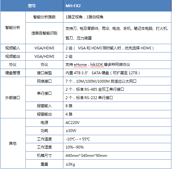 睿盾智能安檢分析儀MH-FX2 技術參數: