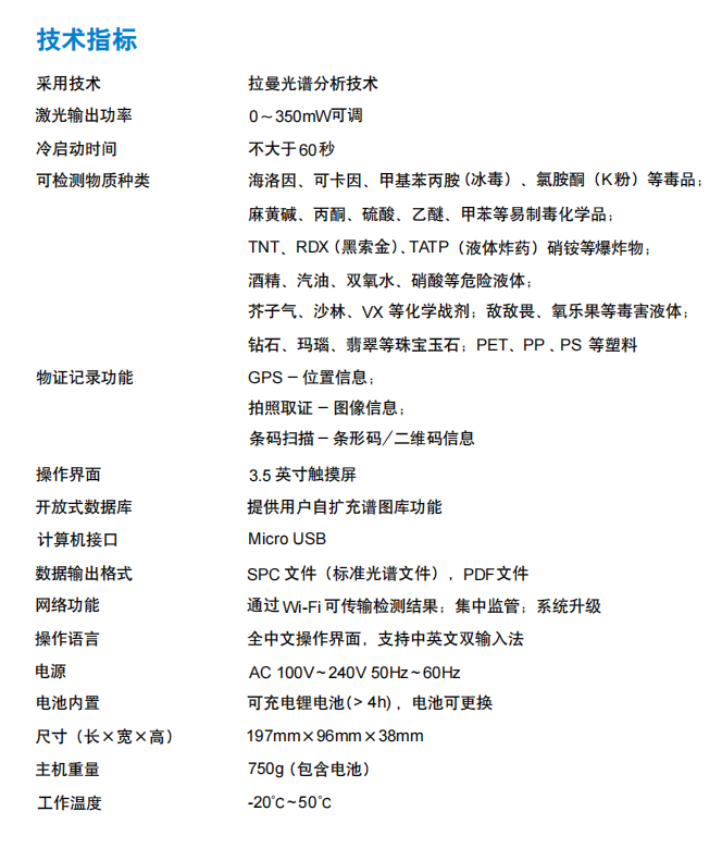 簡介:手持式化學物質(zhì)識別儀,是一款利用拉曼光譜分析技術(Raman Spectroscopy Technology)進行物質(zhì)識別的設備,可以廣泛應用于海關、邊防、公安、法院等,進行化學物質(zhì)的識別和鑒定。